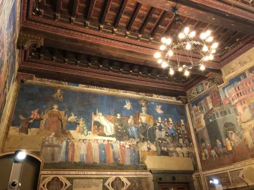 赤レンガの街並み、扇形に広がる美しいカンポ広場、白と黒の大理石が輝く大聖堂、トスカーナの古都 シエナ で歴史と芸術に包まれる時を過ごしていただきます。シエナ共和国の政治の中心であった建物の一部が現在は市立美術館となっており、当時実際に政治が行われていた空間には、政治理念を表現したフレスコ画が描かれています。政治の場に芸術を取り入れ市政の理想を視覚的に示したことは、当時としては先進的な試みでした。シエナの大聖堂では、中世からルネサンスや後世の作品まで、芸術の歴史を体感できます。
